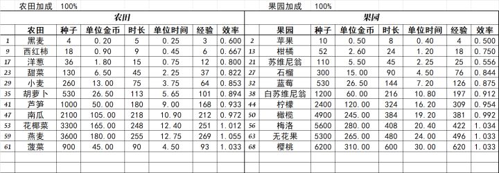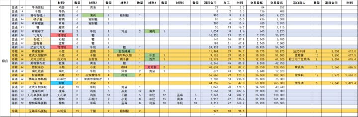 内容如图,包括截至目前的所有作物、加工品、星落夜、爵位任务需求材料。数据均为手打,可能存在错误。
