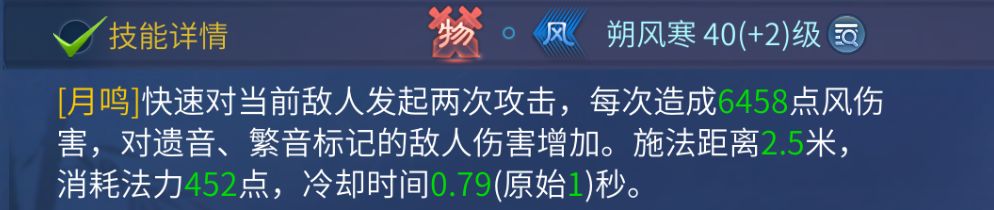 但如果风抗高出太多,就需要切换到秋意临。在技能搭配上,可以一页放朔风寒,一页放秋意临,这样在用朔风寒打不动敌人后,可以滑动技能页换秋意临输出。