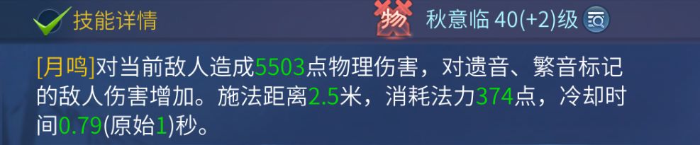突进至敌人位置,造成少量物理伤害并给敌人附带遗音标记(增加月鸣70%伤害),通常作先手技能释放。