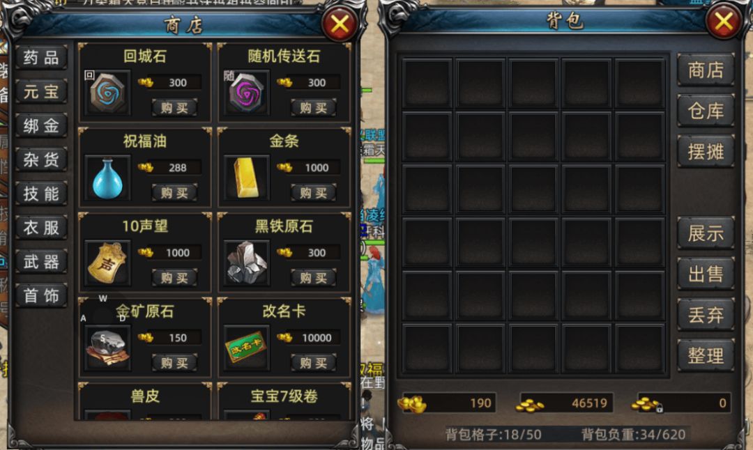 游戏内有三种货币,分别是元宝、金币和绑金。元宝需要充值购买,比例是1:100,金币可以通过刷怪掉落和装备回收。在市场上,元宝和金币可以自由流通,而绑金只能在固定市场购买。
