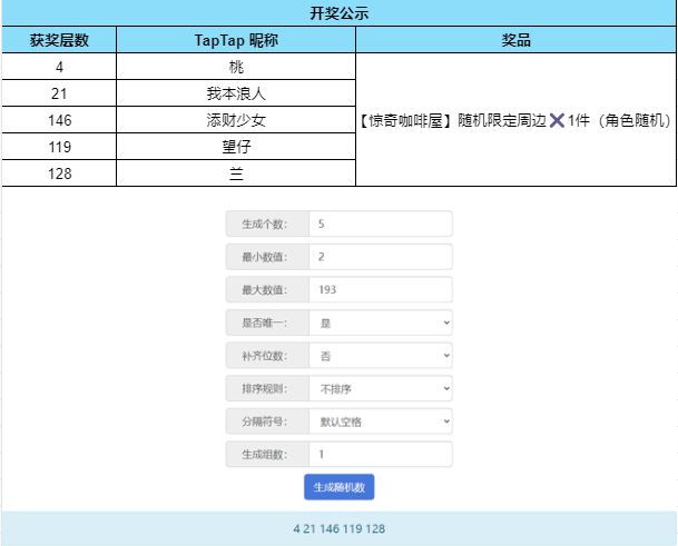 根据开奖结果显示,恭喜以下幸运的玩家们获得奖品: