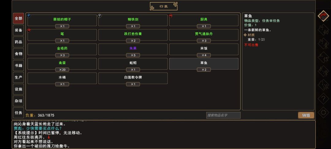 获得[草鱼※任务],于清水镇→房舍(李大娘家)→[人物:李大娘]对话 给予[草鱼※任务]×2。