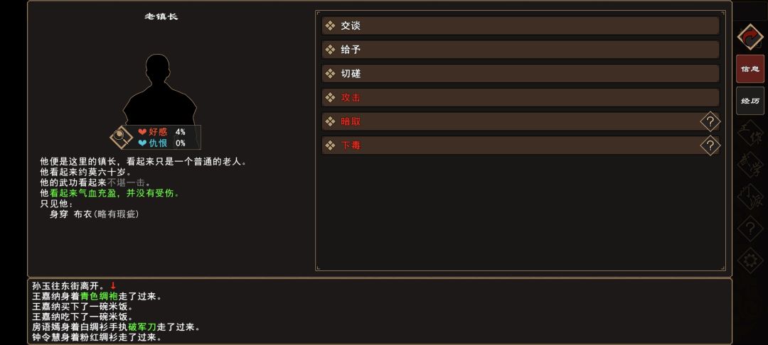 (10)[人物:老镇长]好感度提升至52%。