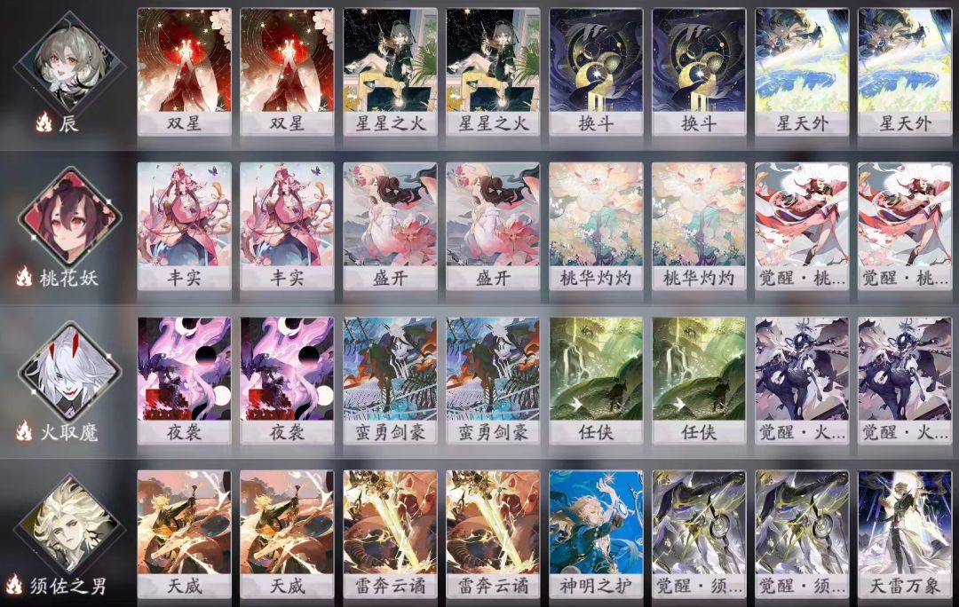 辰的三勾不太够看了,当然你也可以觉醒、SSR各带1,少带一张星星之火跟换斗。