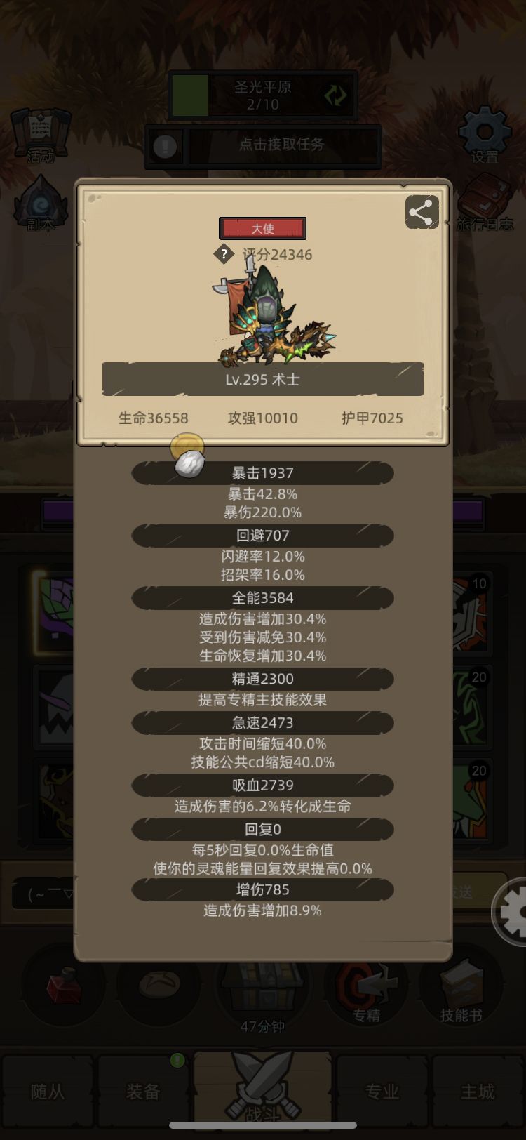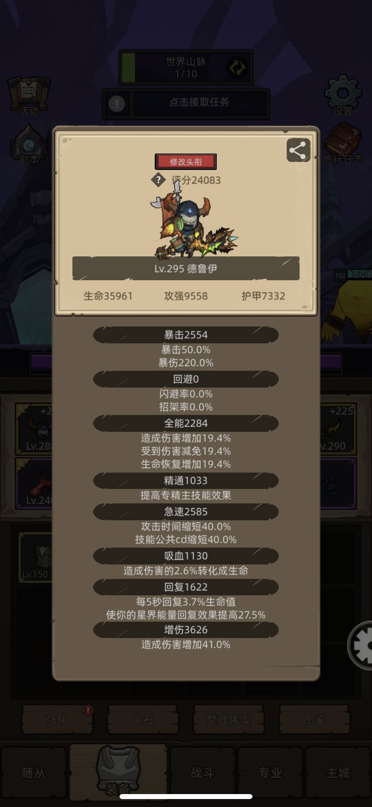属性:暴击,急速满,吸血至少2000➕(为了应对黑暗熔炉老二),剩余主全能、增伤、精通有啥用啥