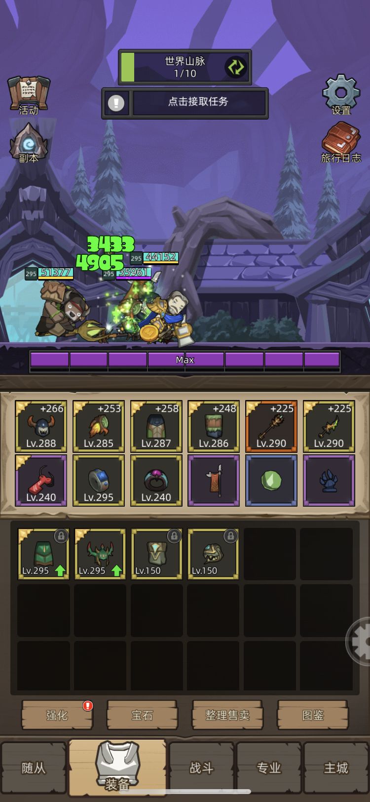防具:290➕295套(我没150专精所以没穿齐295套,如果点了专精的建议295套)