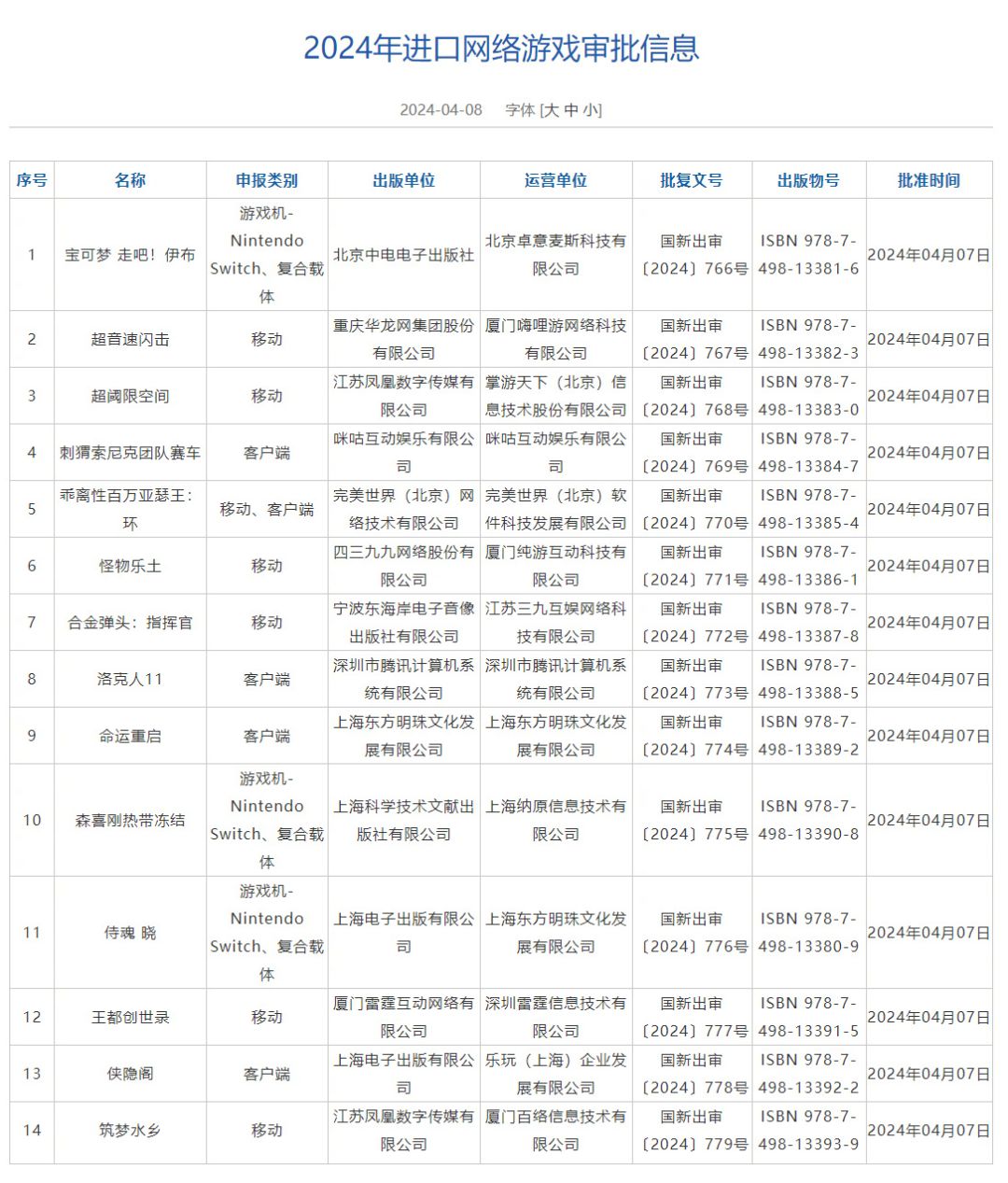 无须多言,这次过审的是NS和复合载体版号,等一波去皮去伊。(以及另一半的《宝可梦 走吧!皮卡丘》)