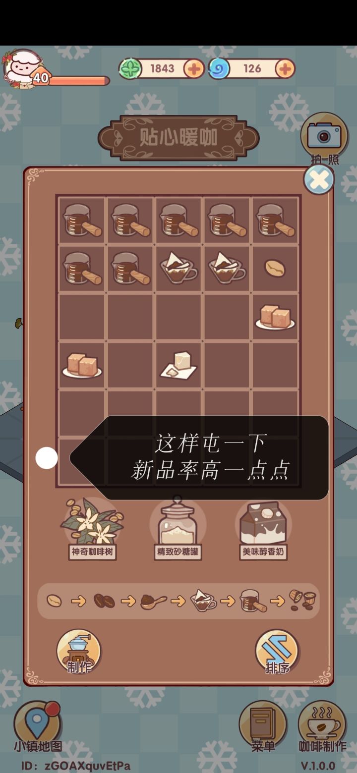 1.咖啡可以三个材料一起点,然后排序(好像屯一下在做新品概率大一点p1)