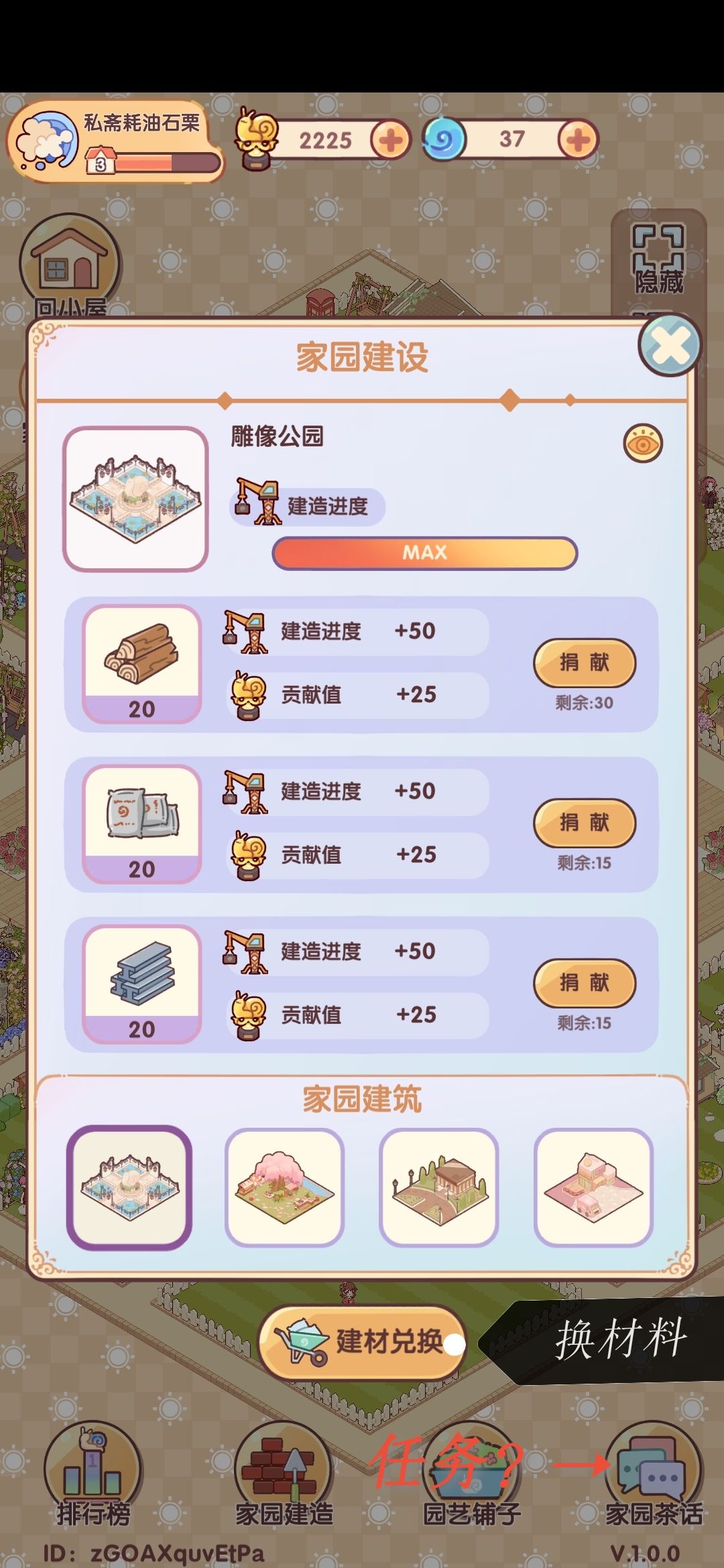 7.补一张,家园贡献度可以在园艺铺子换建材,每天给别人建材也能提高贡献度