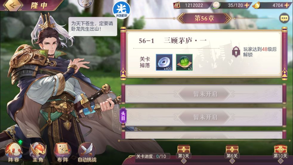 目前47级,今天主线推完。剩余体力都用来进阶武将。