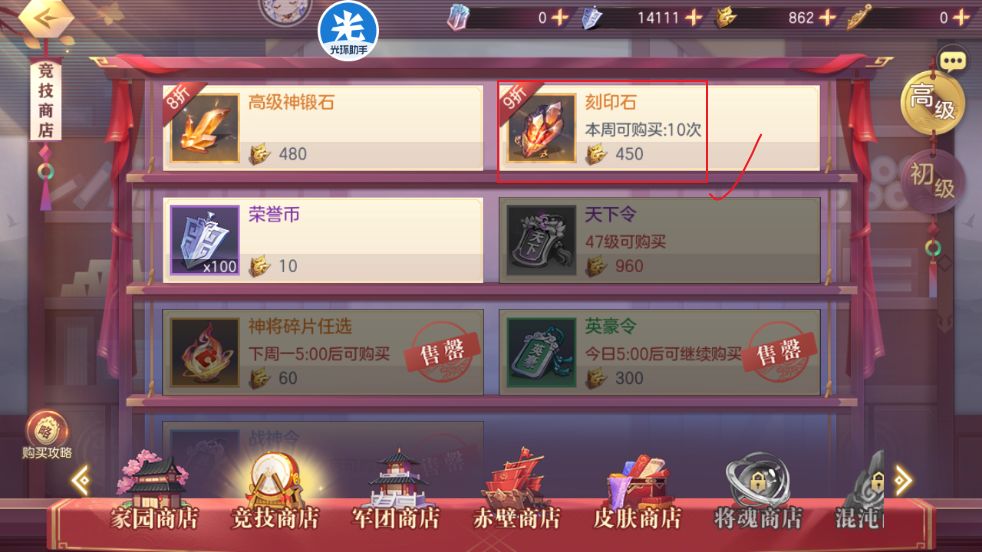 高级:兑换60神将+背包里的神将碎片+今天送的一个神将,可以把水镜升到3星了。其次可以优先兑换刻印石。