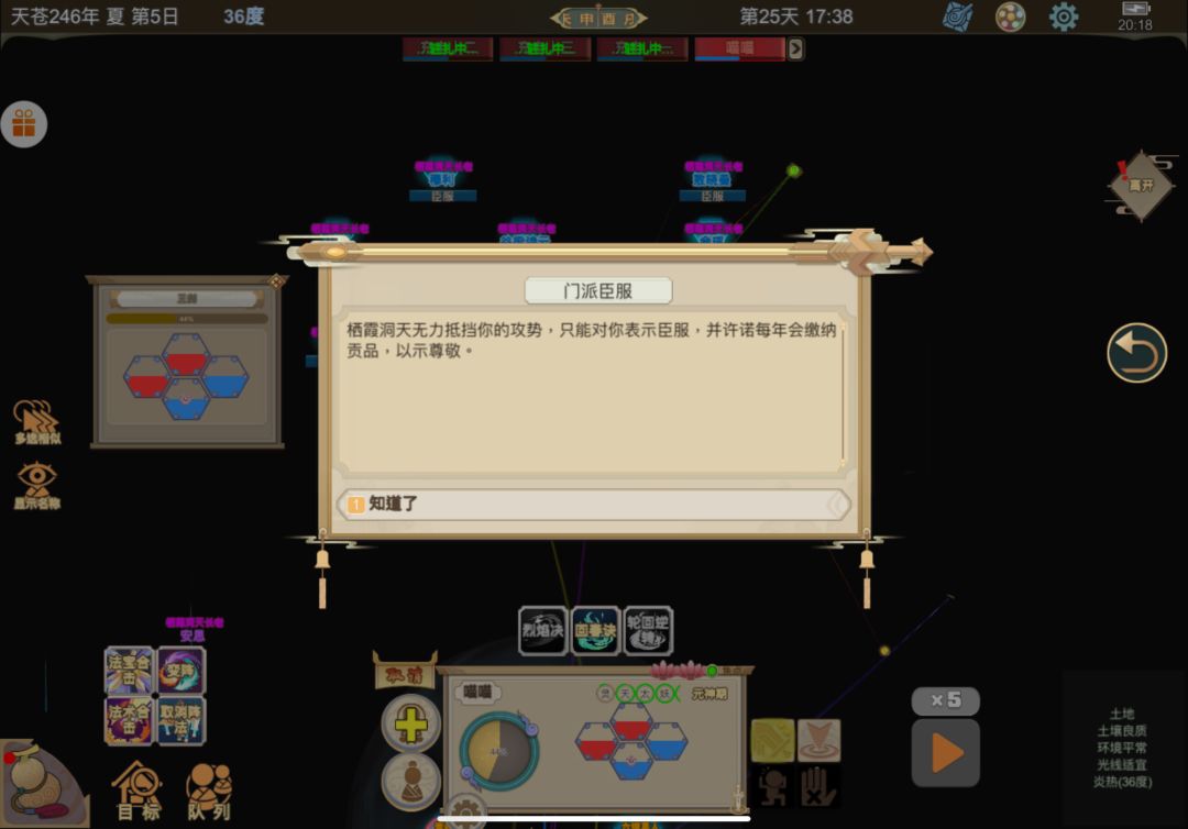 时间来到第六天,杀妖兽杀到2000声望,可以招募到18个小人和建修炼堂了。