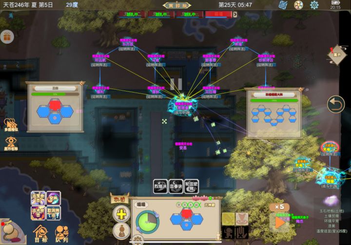 花卷探图,姬星和米波砍树收集30个以上灵木,合理运用龙唌果,不眠不休三天内建成半个万灵阵(不懂万灵阵B站查攻略,我这边就不讲解了)