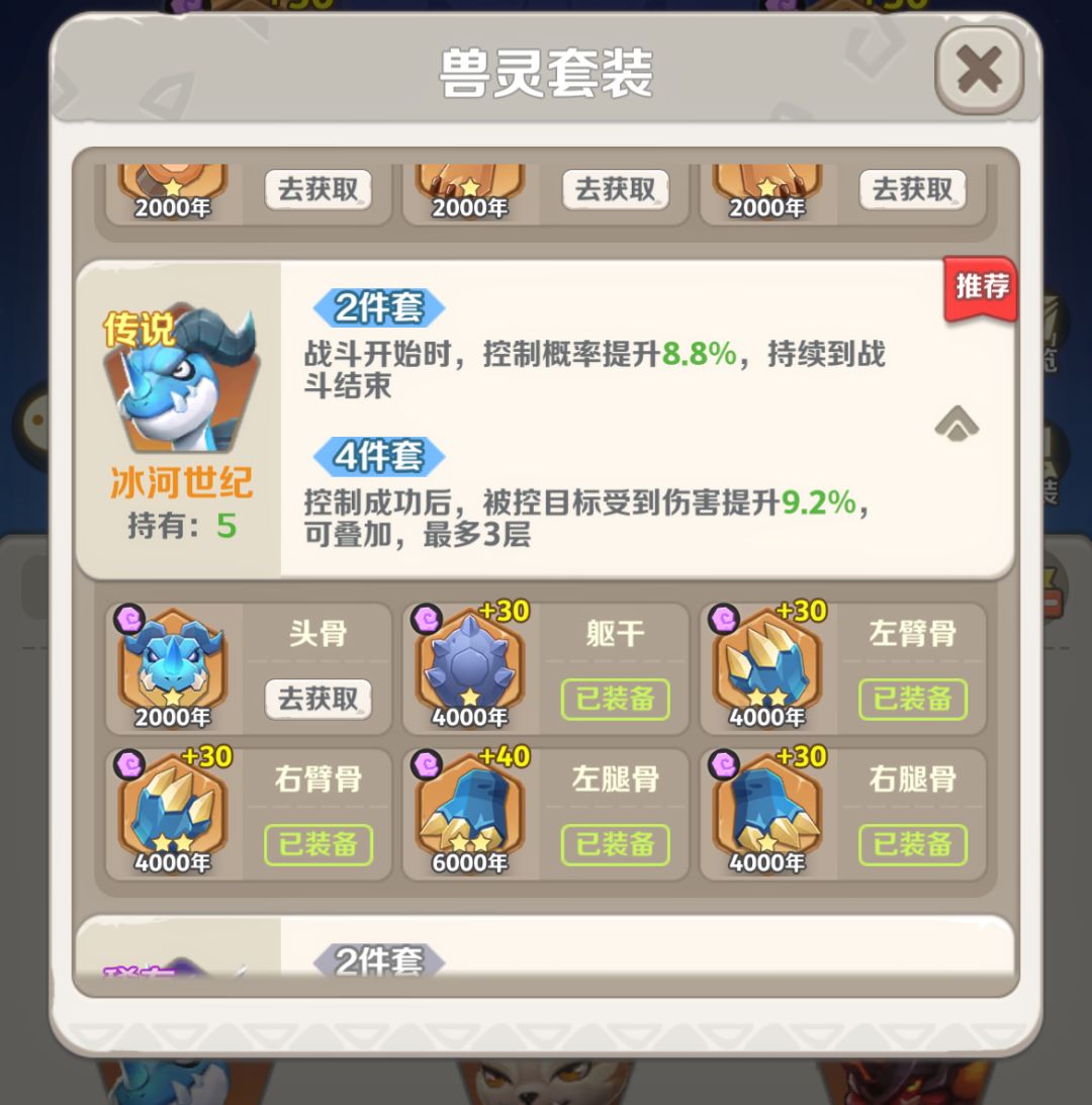 【兽灵】:冰河世纪4件+魅惑猫后2件。
