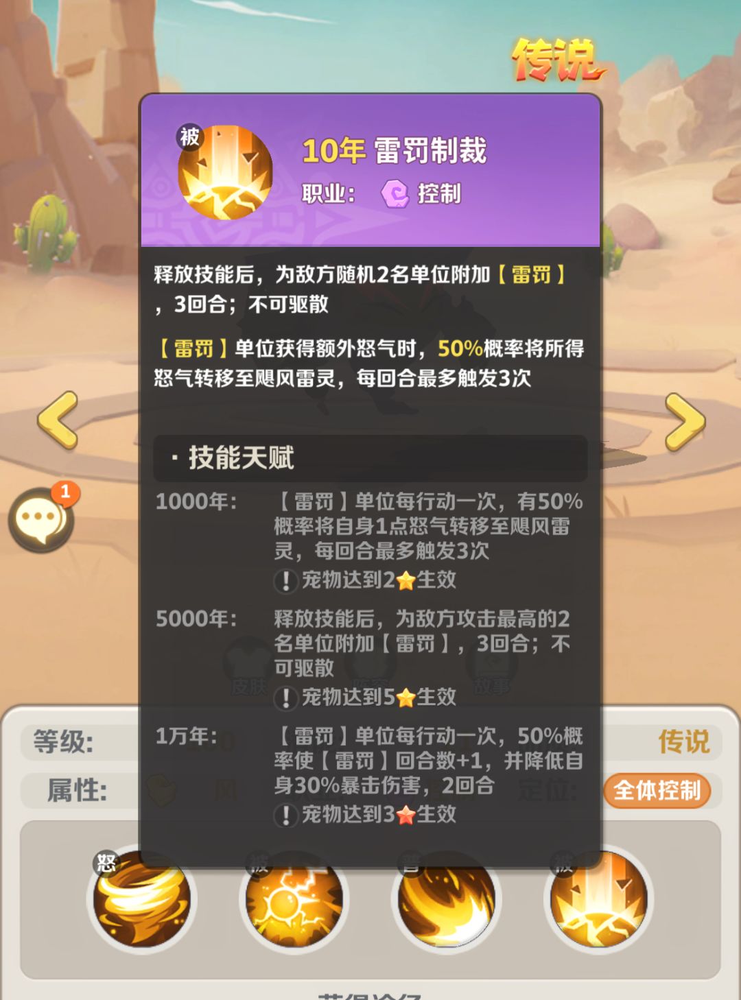 【特点介绍】:风系请系好安全带准备起飞了!在上一代轰隆轰龙的加入,已然为风系带来了不可小觑的主C风法,此次更新的风系控制宠,弥补了风系没有全控宠的局面,飓风雷灵的加入为风系的爆炸输出之外,又带来了更高效恶心的群体控制、减怒、降伤等等技能,让输出宠可以更肆无忌惮的疯狂输出!除了闪电龙卷所带来的全体控制并且附带减免敌方免伤,灵力掌控可消耗自身怒气来驱散控制,好比是无敌龙的小无敌盾般驱散控制,雷罚制裁带来的效果更是可怕,转移敌方怒气到飓风雷灵身上还降低敌方爆伤,重点是雷罚制裁甚至不可驱散,可谓是当前版本之宠,优点是控制BUFF非常的多,且可以配入到各系队伍之中,但缺点就是血薄太脆,且看技能能够看出雷灵非常吃怒气,所以真正能发挥到最大效益的还是属纯风系或混搭风系之中,且红3星时的控制效益会最高。