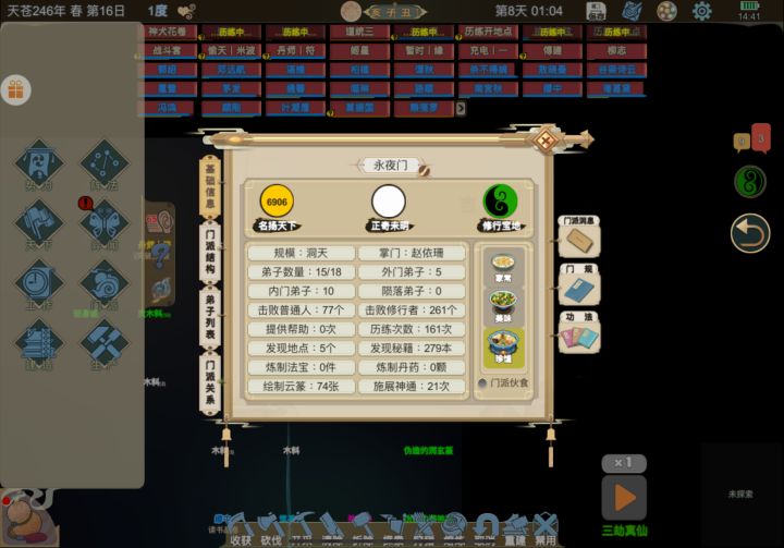 前面拿到大漠篇,万妖殿已经解锁,用赵依珊去趟万妖殿,把资质不错的凡人妖族邀请过来,我们这里需要一个虎妖做大哥,没有好资质的虎妖就用猫妖平替(这个时间越快越好,12天左右我们就需要大哥进内门修炼)