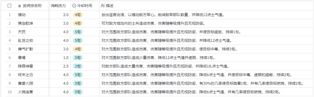输出流: 降罪神雷是自创武将技里最强单体爆发,冷却3旬,配合上培养的减冷却。技能满级后一雷1w不是梦。当敌方武将聚集后使用“终末之日”满级后平均5k