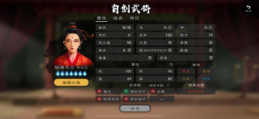 父亲/母亲/结义/配偶:当设置了对应的自创武将英雄,在攻城、攻打敌方武将时会触发支援攻击。