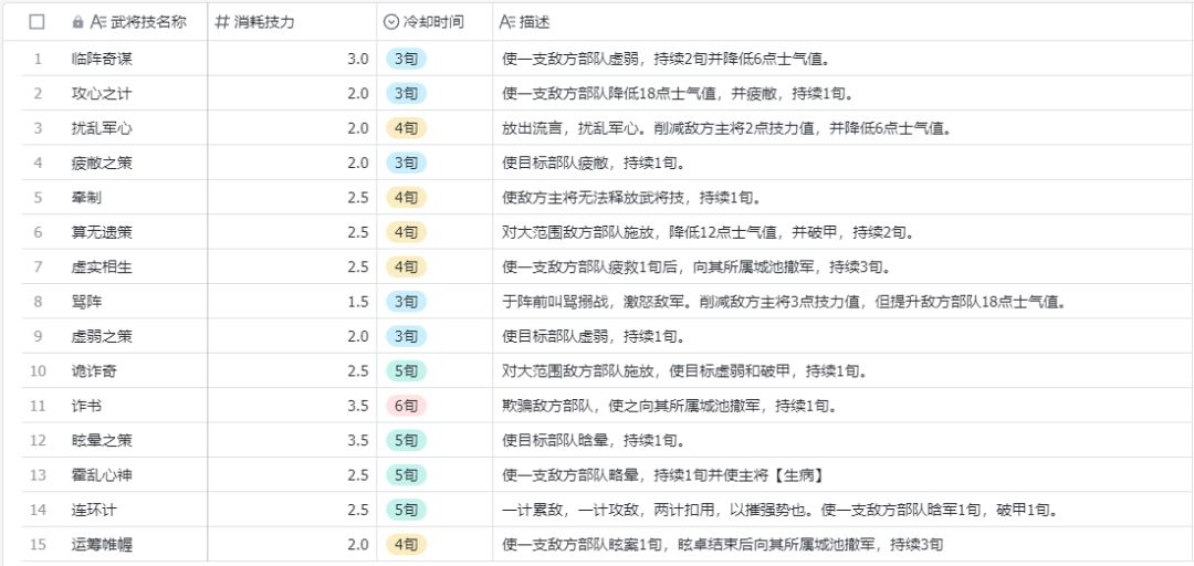智:影响计策伤害、影响资金收益、影响计谋成功率