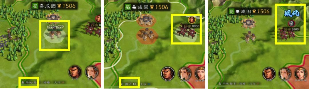 顺风触发条件:敌方在平地,我方在高低,普攻即可触发