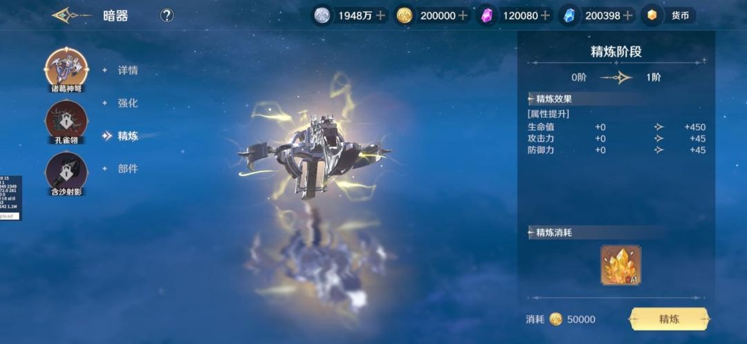 1、「暗器精炼」——可进一步对暗器的属性和技能进行提升。