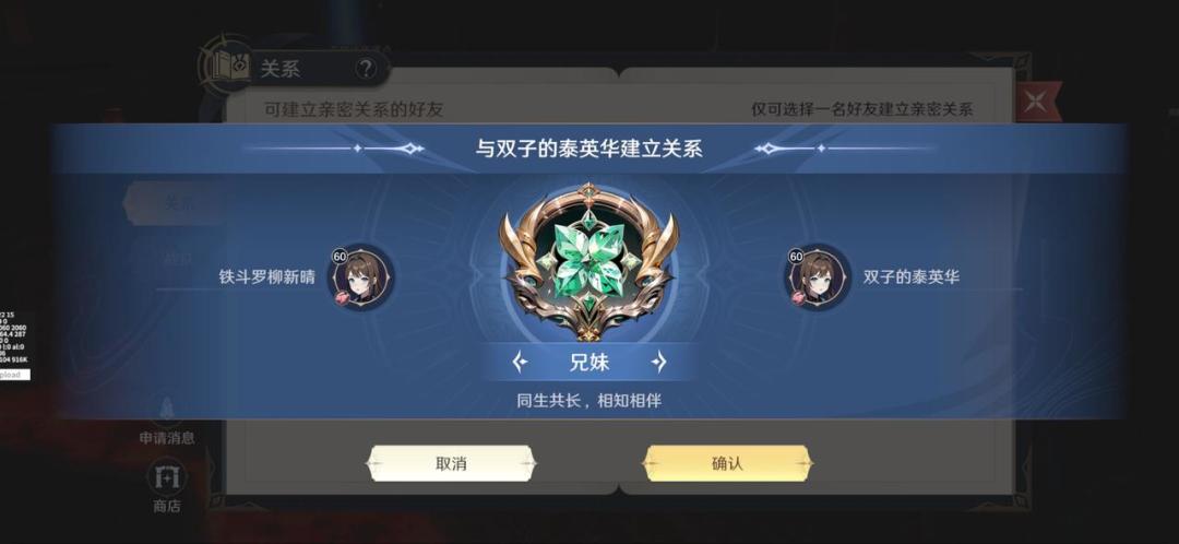 玩家可与另一玩家建立指定关系,通过日常提升关系等级,获得货币奖励在商店兑换道具1.魂师相互好感度达到3000可以申请建立亲密关系,对方同意后关系成立。可自由选择一种亲密关系申请,但仅可与1位魂师建立亲密关系。