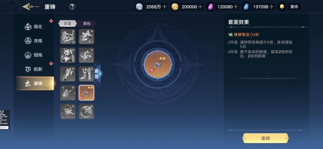 「装备-重铸」:——收集相同套装标签的装备,获得更强大的套装效果