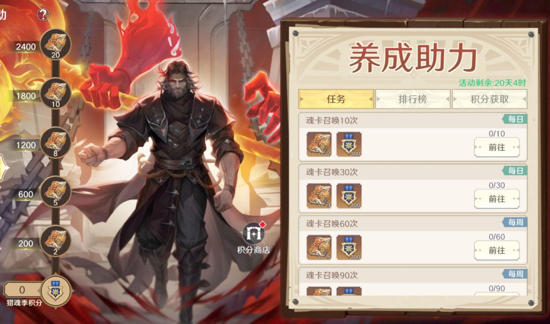 全新魂卡季活动上线,累计登录即可领取丰厚奖励。完成指定任务可获得珍藏卡册和魂卡养成材料,以及魂卡季积分,积分达到一定条件后可领取对应档位的奖励,更有积分兑换商店,大量养成道具等你来拿。
