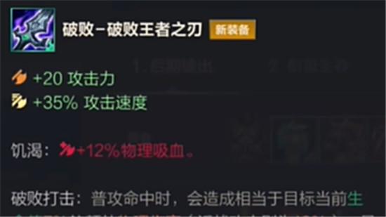 新的破败之刃增加了2%吸血能力以及额外物理伤害1%,增加了15%的吸血能力,购买金额也降低了200块,但是自身会降低60-150的基础生命值