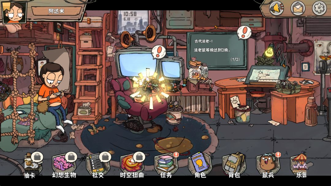 在阿肥的卧室点击电脑桌进入研究系统: