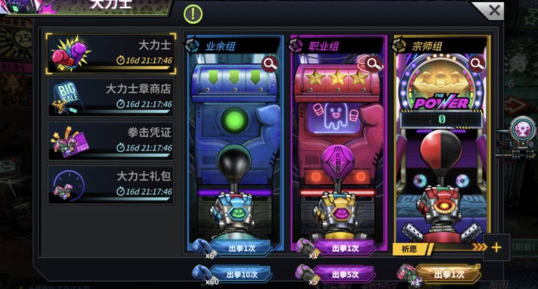 4.最强大力士:每次参加宗师组可在轮盘中自行选择合适的时机点击出拳,并记录下你的历史最高分在全服进行排名。