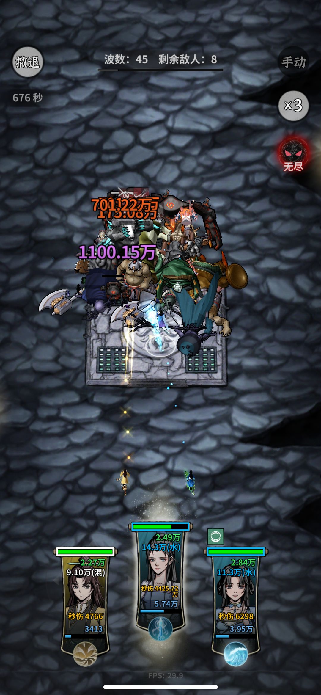 1,此条可选:塔的刷新机制是每三波一次重复。这也是为什么我们的挂机秒伤不稳定的根本原因——如果前三波刷得都是克制你的BOSS,那你的伤害就会一直很低;如果前三波刷得都是你克制的BOSS,那么你的伤害就会一直很高。所以如果想最快速度刷得话,可以刷几波以后看一下伤害,例如我来说,瞟一眼低于3000W就说明BOSS刷得不好,极大影响刷装效率,可以直接退,高于3000W就继续刷。此条为备选项,因为需要浪费一定精力,心情好我们可以看一眼秒伤决定是否退出重新刷,大部分时候我们直接挂机就可以。