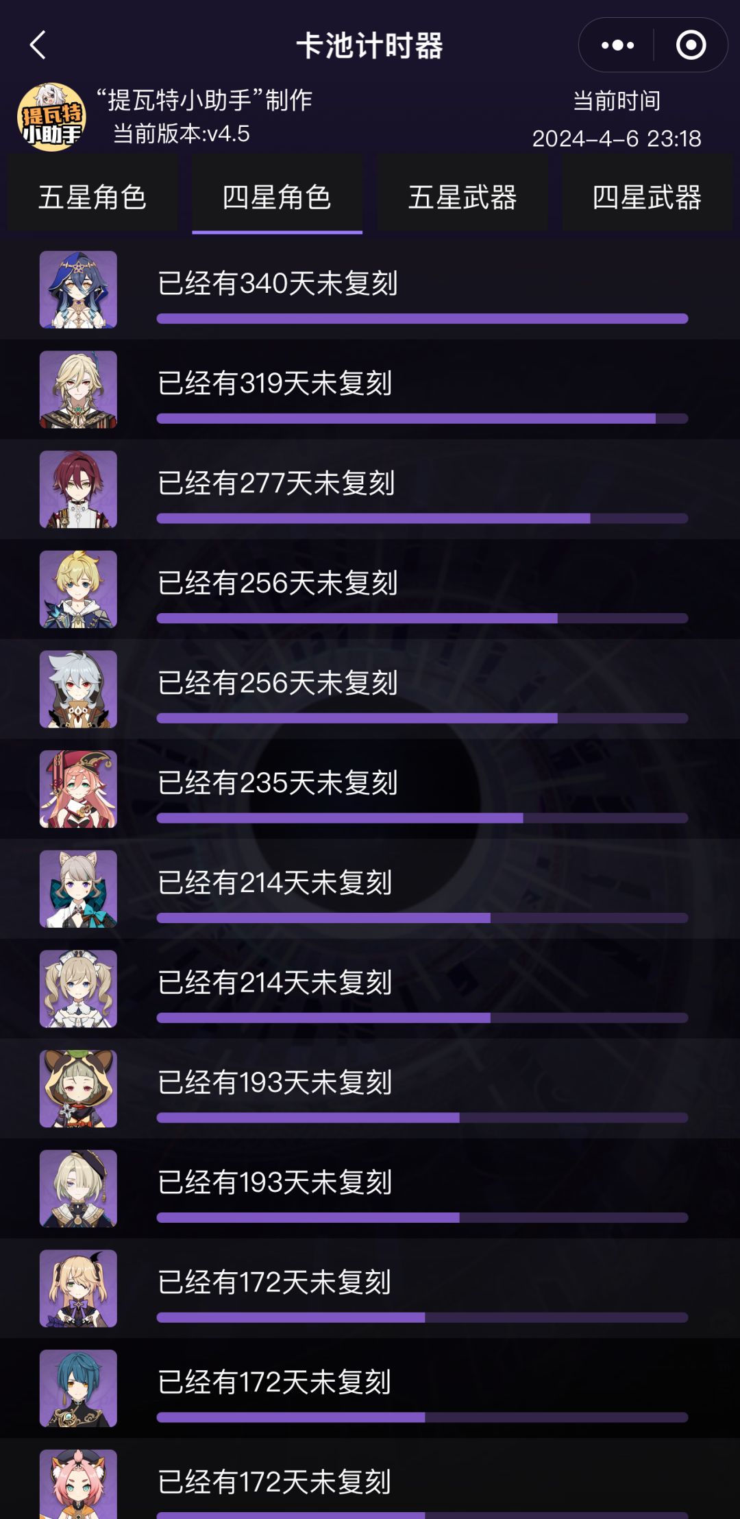 (截至目前最久未复刻的四星角色)