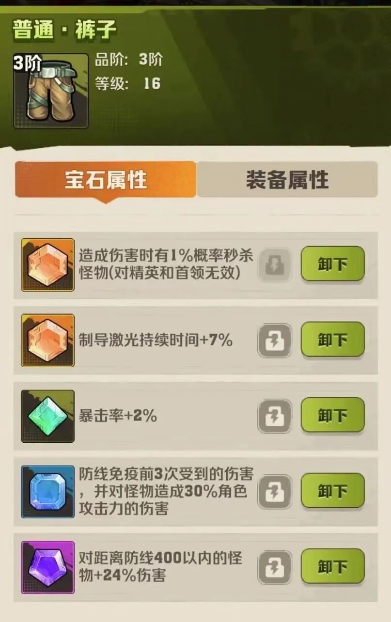 最后,一些特殊的宝石如击杀回血宝石、防线血量宝石以及免疫伤害宝石等,在特定情况下也能发挥巨大的作用。比如在面对强大的BOSS时,击杀回血宝石可以为我们提供额外的生存保障;而在需要快速突破防线时,防线血量宝石则能帮助我们更好地完成任务。