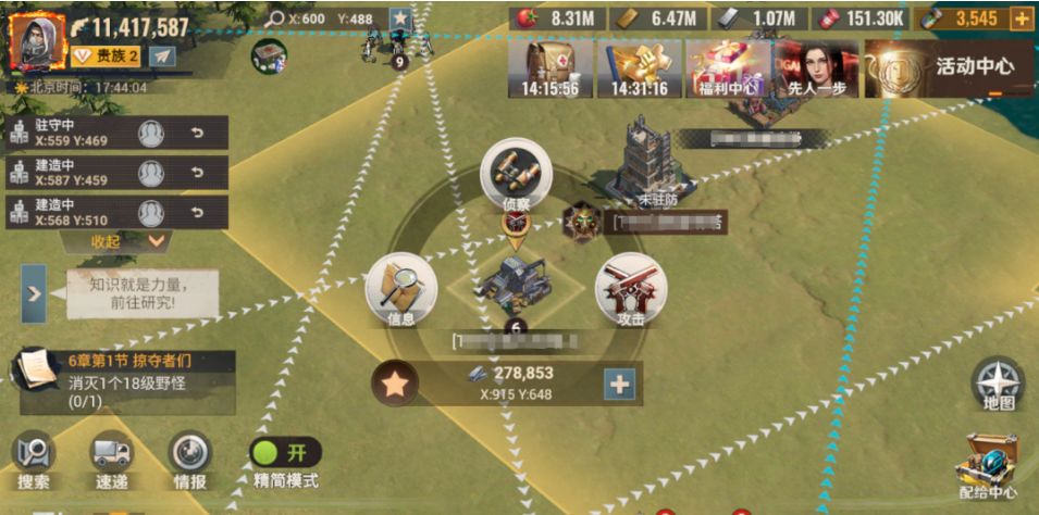 指联盟通过修建哨塔的方式,扩展联盟的领地范围,从而将更多的联盟资源囊括至联盟范围内。同时联盟成员也有更大的活动区域可以享受联盟领地的增益。(包含采集加速,驻守避难所作战单位的攻击和防御能力增加)