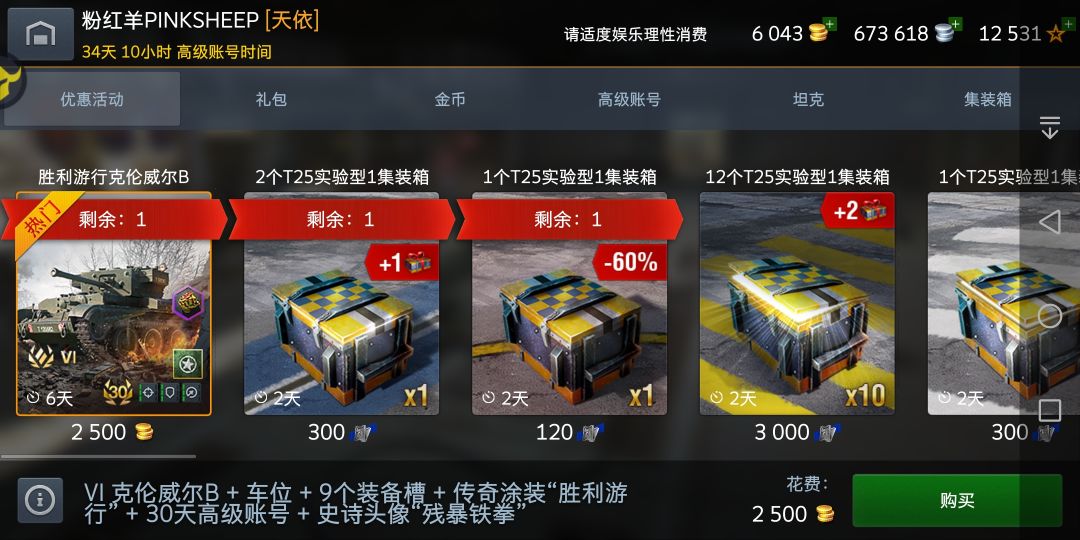 现在,你有2500金,满配加传涂加30天高涨以及一辆***传说的高机动中坦,相信大部分人都知道我想说什么了。