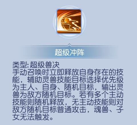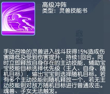 冲阵绝对算得上是一个宠物技能革新。解决了宠物出场闲置的问题,同时开创新打法,玩过某幻的兄弟们都知道瞬法瞬击,有了冲阵这个技能,辅助职业输出能力也不可小觑。比方说顺风局不想太过于拖拉,直接更换宝宝触发攻击;又或者单位被封印,直接更换宝宝一回合,依旧有收益;而且这个技能最强大的地方就是输出和辅助宠物通用。不过在这里还是优先推荐高伤害的输出宠物进行搭配。
