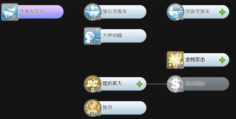 手推车攻击10、强化手推车10、大声呐喊10、集资10