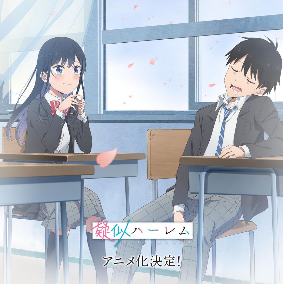 《疑似后宫》将由菊池聪延执导,柿原优子负责剧本统筹,佐藤义久男担纲角色设计,主角北滨瑛二和七仓凛的声优则是冈本信彦和早见沙织,动画预计在7月正式播出。