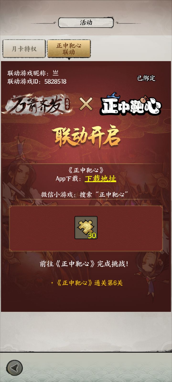 1.领取方法:这次联动难度相对简单,只需玩家打上中级3段位即可,领取方式见图一右上角活动里,打开后点击“正中靶心联动”即可;