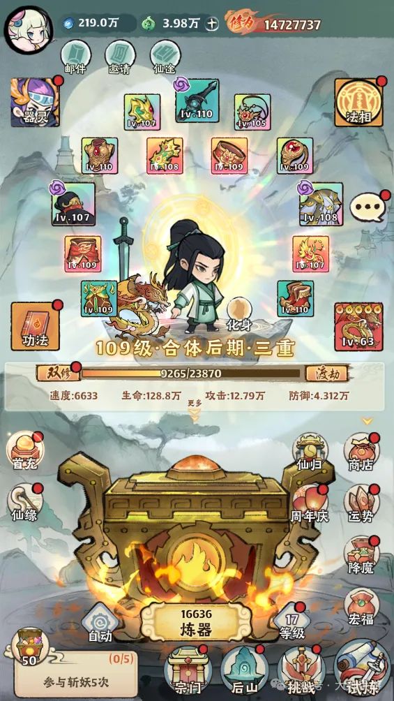 《神器传说-大话仙境》是一款以“炼器”为核心,拥有完整仙侠体系的放置修仙游戏。作为一个初出茅庐的宗门弟子,你可以不断开箱炼器、升级装备、接受试炼、寻仙访友,踏上漫漫修仙长路。