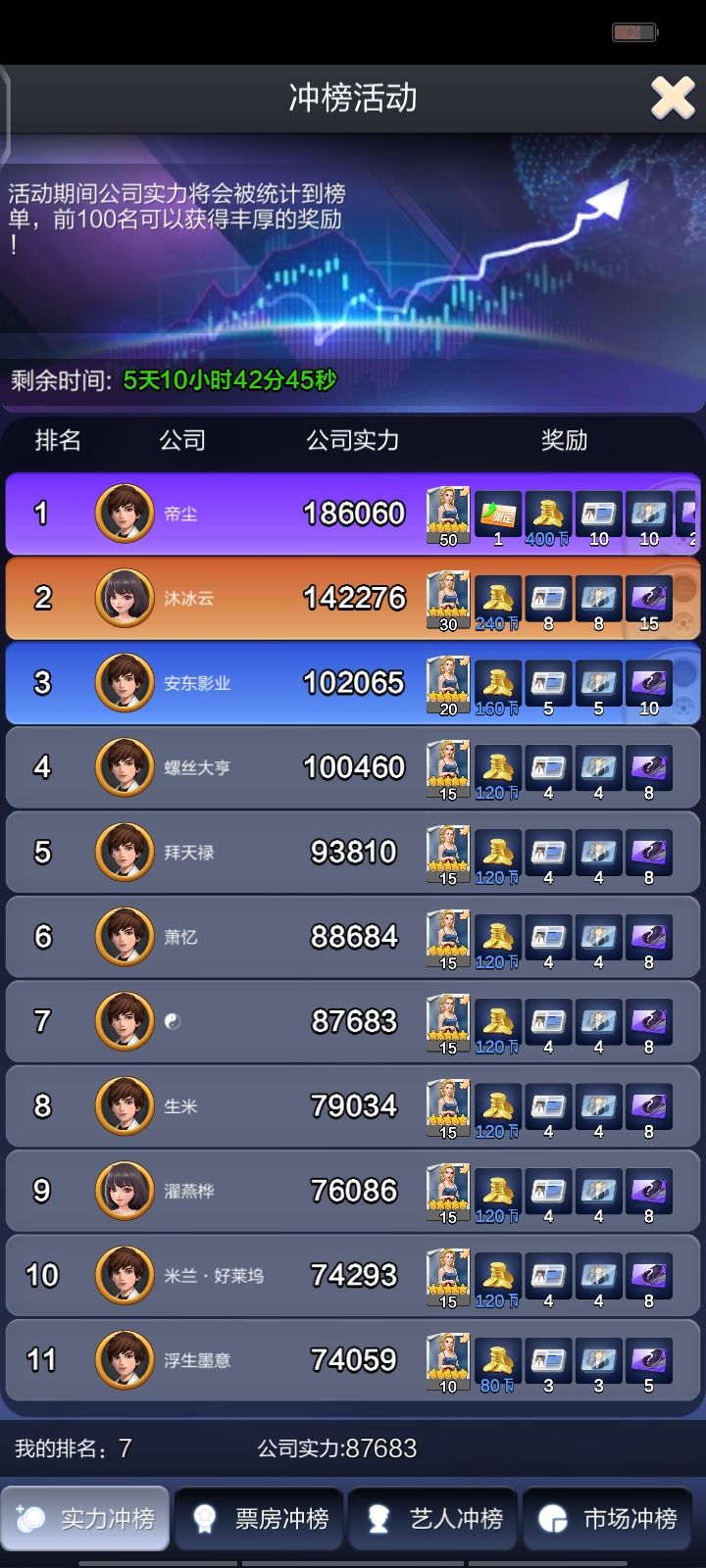 简单明了,直接上干货,新人创建账号以后 升级到10级(快速升级推荐选择欧洲女拍爱情片)会跳出冲榜活动,这时候我们点开活动可以看到活动剩余时间, 冲榜活动从开始到结束有七天时间而这个游戏开服时间官方不做公布但给出了大概时间范围(两、三天开一新服)两天是在人多的时候可能会加,但大多数时间都是三天开一服,所以当我们创好10级号以后就可以点开冲榜活动查看时间剩余多少一般剩余四天整就说明大概率开了新的服务器。