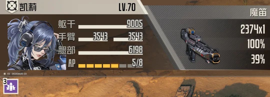 - 辅助:凯莉的辅助效果主要有2个,其一是辅助命中的【无处可逃】技能,这里会提供一个“被命中概率提升Ⅱ”的debuff,其命中部位的权重会提升45,比起艾莉森那个要高出一些,不过这个debuff的存在时间只有1回合,对比艾莉森的2回合则略有不足,所以如果我们用凯利来进行命中辅助,则需要每回合都用一次【无处可逃】才行,而这个玩法一般都会配合卡米拉等角色来使用;其二则是可以为友方增伤的【协同指挥】技能,这个技能就基本上是配合突击角色来使用了,例如先给boss一个强化设计buff下的【无处可逃】技能,命中躯干权重提升,然后一众突击友方会对其进行围攻,随后便能享受到10%的伤害提升,持续1回合,且命中对方的躯干概率也会提升,不过客观说这个用法在boss的躯干有保护的关卡中意义并不大,大家也需要视情况来考虑