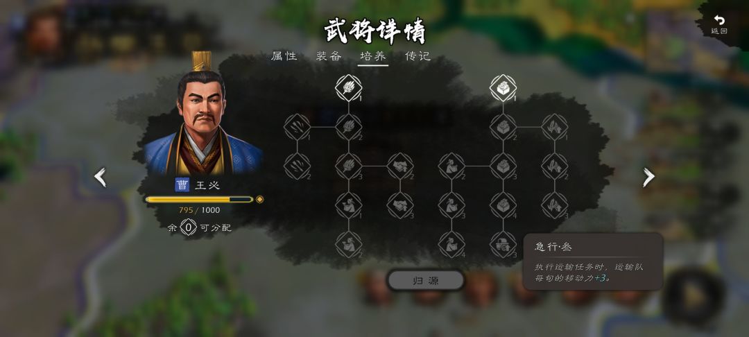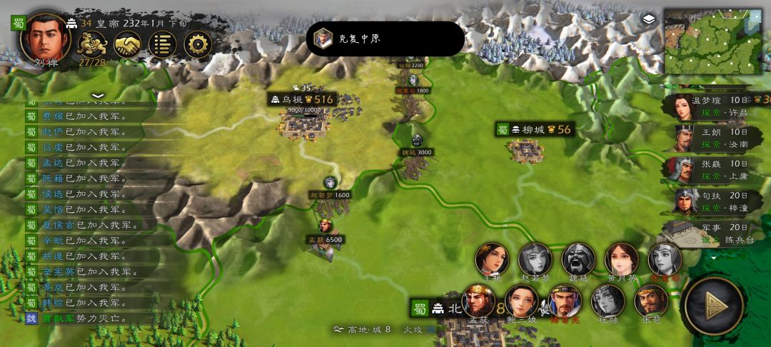第二步:占领的所有城池设均衡,武将全部2+1,委托双登庸,远离战场的城设隶属10%,前期+建设,伐木场,农田,村落,建满所有城基础设施,(期间多余的行动力就探索,看提案里的探索即可,其他的都不用管,有躁动的,去背包里送道具给武将提高忠诚度就行了)