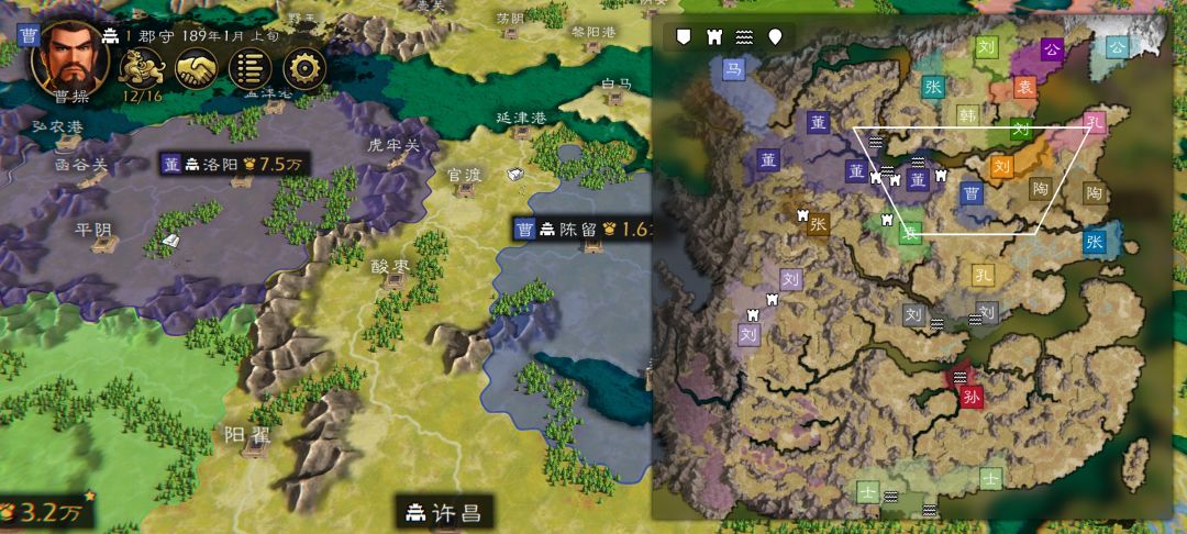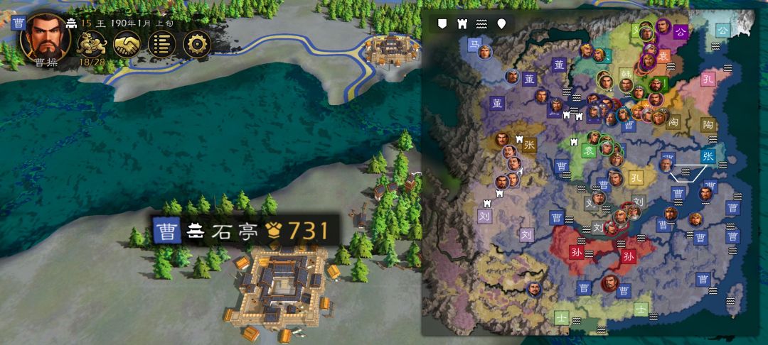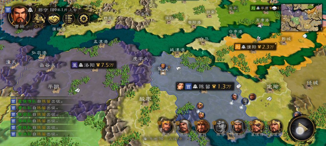 打法:占领陈留(选税收),许昌,宛,上庸,新野这四个均衡把五个城农田,伐木场,村庄初始能建的数量都建满,除了陈留,其他四城用2+1安置武将即可、然后就可以开战了,用计策协同袁绍打吕布,主要就是吸引火力,二夏出投石车打掉定陶,曹操出虎卫桥前面抗,后面出3-4投石车砸就行了,吕布没资金了,上下一个投石车,其他转盾兵攻城就行了