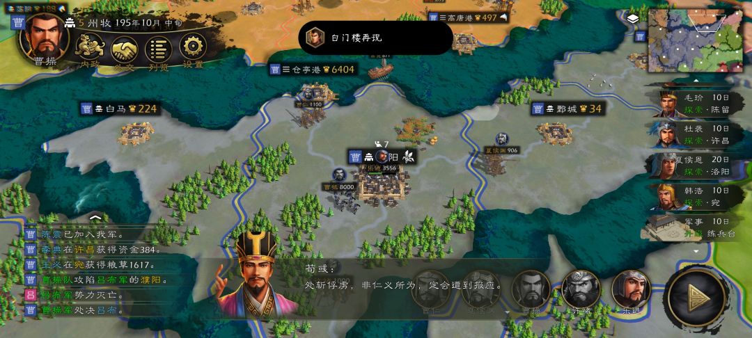 陈留“设税收,前期曹操不要派出去,可以探索招人曹操容易招来,