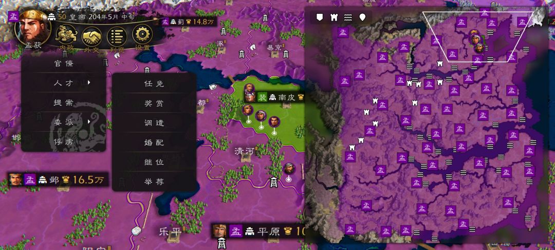 此外,可以保留士燮势力,给他留一个南海主城,然后打掉两个小城之后,亲善到80,结盟(这一步在某种意义上至关重要),因为灭势力,武将有三种归途,1.被俘,2.在野,3.归降别的势力,