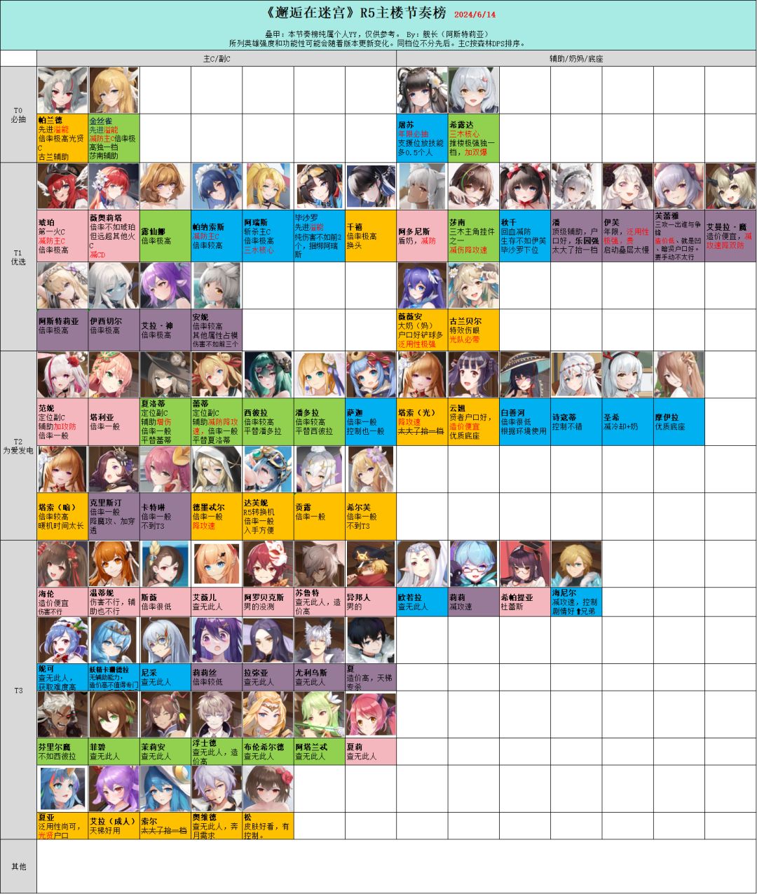 最近也是R5了,环境发生了很大变化。总结一下R5主楼环境生存>输出,也就是在这个情况下又有输出又能保命的希露达龙刀木队会成为推楼的唯一选择。但是一旦离开宠物伤害就掉一大截,而且对宠物要求很高。所以在资源有限的情况下,还是可以适当抽取主C来打公会和活动的,比如金丝雀就还不错。目前环境不建议抽副C,不如上个保命铲球的纯辅助增加生存能力和溢能。几个溢能C虽然比老C伤害高,但是撼动不了希露达的地位。