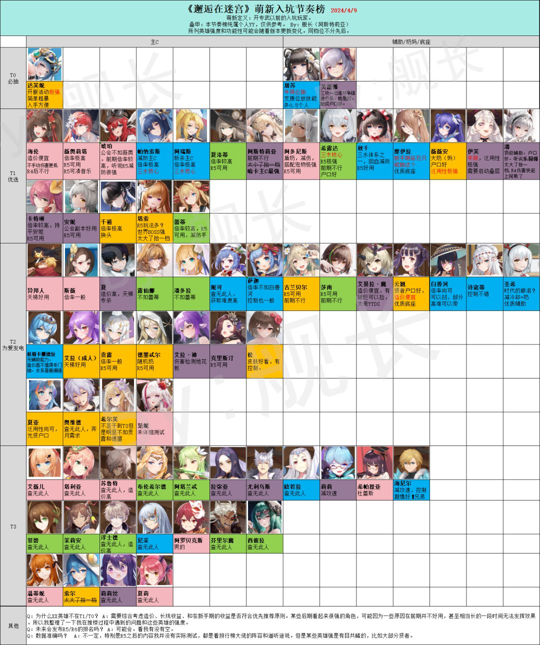 因为最近工厂火灾没班上,我抽空归纳了一些在前期玩法中,如爬楼、奔月、公会等情况下的英雄强度。