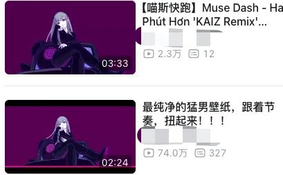 太阳底下无新事,事实上Phigros也不是第一个因为画面表现出圈,导致被短视频引流的音游了,哪怕不说之前的几次出圈。让我们回到2020年,同样作为热门音游的《Muse Dash》,就是因为与动漫摇相似,而火出了圈。